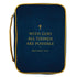Protect your Bible with the "All Things Are Possible" Bible cover, featuring a bold navy and gold design. Inspired by Matthew 19:26, this cover serves as a daily reminder that with God, all things are possible. Durable and stylish, it's perfect for keeping your Bible secure while reflecting your faith.