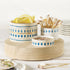 Trio Ceramic Bowls on Wood Base - Blue Pattern