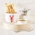 - Set of 3, ceramic bowls with a red lobster design-sit neatly in a sustainably sourced paulownia wood base.