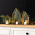 Bring timeless holiday charm to your home with this enchanting set of three vintage-inspired glass and brass houses. Each piece features classic architectural details and warm metallic accents that evoke nostalgic Christmas memories. The graduated sizes—10" H, 7.5" H, and 5.5" H—create a beautiful display when arranged together on shelves, mantels, or tables. Crafted from quality glass and brass, these decorative houses add elegant sophistication to your seasonal décor. Perfect for creating a festive vignette or gifting to the collector who treasures timeless holiday aesthetics. Candles not included.