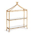 This curio shelf is a contemporary take on chinoiserie style. Smooth and refined, it is scaled to work well in the smaller space. The gold finish and mirrored accents add a sense of light and reflection.