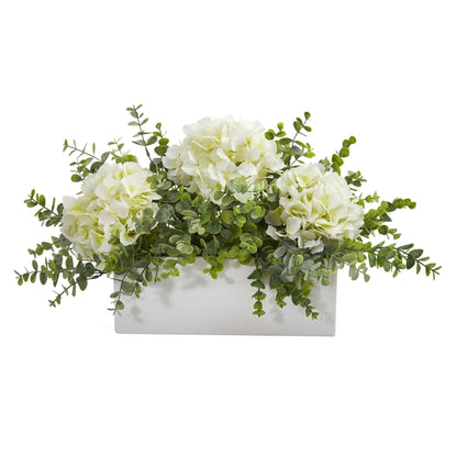 15” Hydrangea and Eucalyptus Artificial Arrangement in White Vase