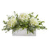 Incorporate hints of countryside beauty with the help of this artificial arrangement flaunting a collection of realistic looking silk hydrangea blossoms, each intricately designed in soft, subtle colors and highlighted throughout with an overgrowth of eucalyptus foliage in complementary green hues. Reaching 15” high from a white vase, this incredibly lifelike arrangement evokes elegant beauty wherever displayed.