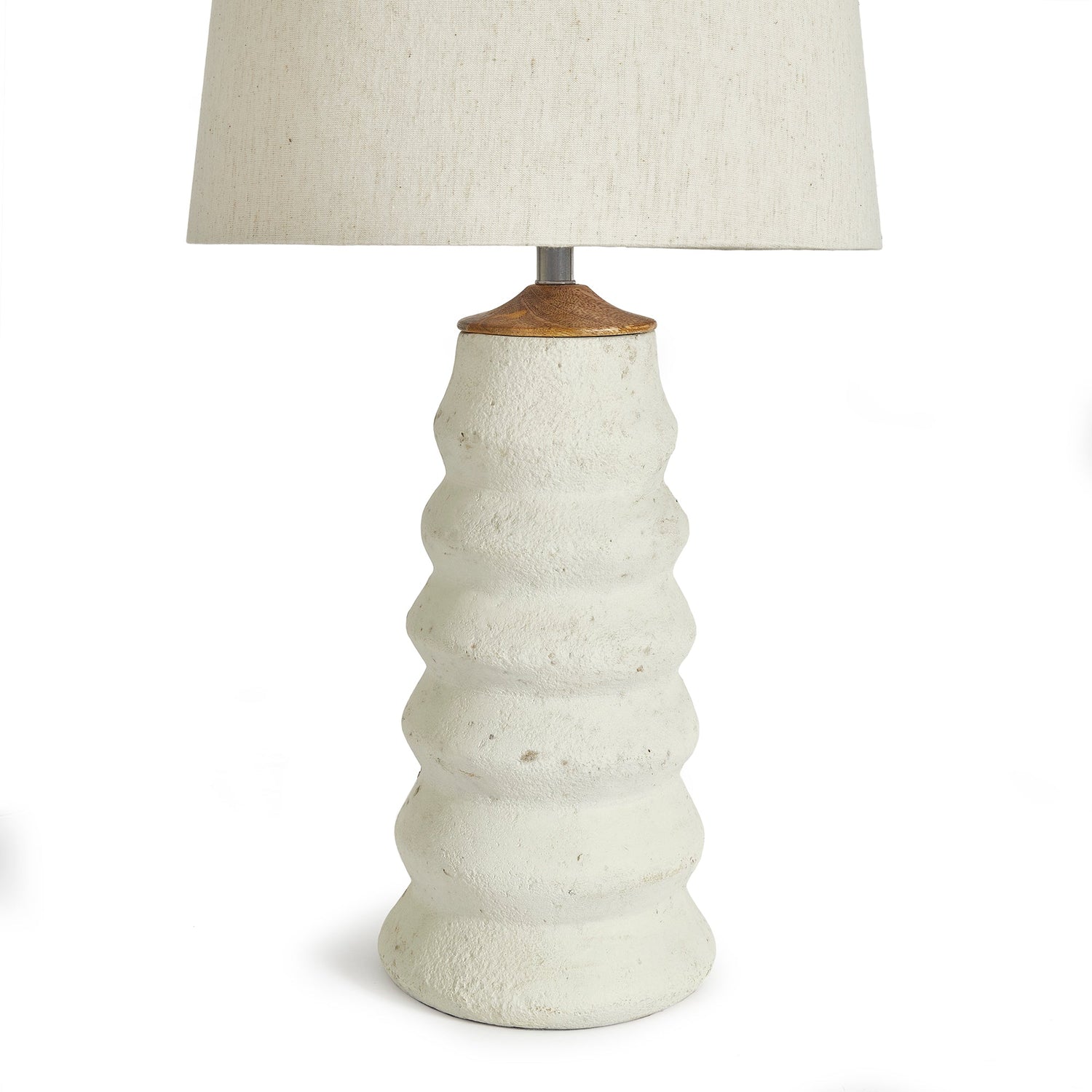Made of a composite, natural eco mix, the Adria Lamp base is composed of hardening agents for longevity. The finish is warm white with a pitted texture that shows the composition of the material. With a tapered shade, and neutral tone, works well in every environment.