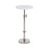 This stunning one-of-a-kind accent table makes a bold impression with its handcrafted charming style. The Engles drink table has a sophisticated design, with a round tabletop featuring a charming decorative look. This round drink table features a unique telescope design, which allows you to adjust the height anywhere from 22 inches to 29.75 inches tall. This means that you can make it fit whatever height works best for your space.