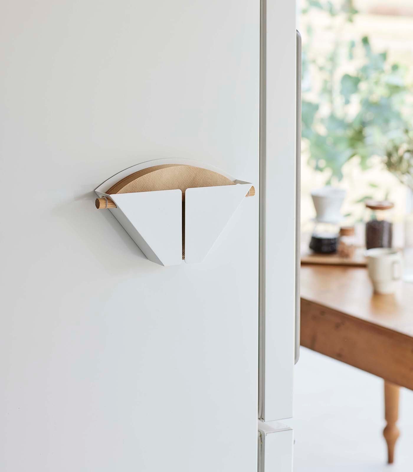 A filter holder you can stick to. A handy, trusty, size #4 filter case for the one who has no time to lose in the morning! If you want a coffee-making routine you can complete with sleepy eyes half-closed, try sticking one of these magnetic filter cases near your coffee pot in the morning. It sure beats fishing around in a drawer and will keep your filters crinkle-free, too.