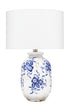 This antiqued blue & white ceramic table lamp, with a hand applied glaze and vintage floral pattern, is a statement maker in any room.